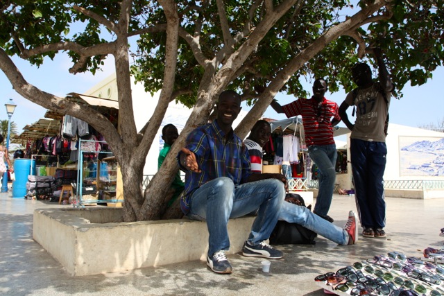O ţin langa cu întrebarea asta până în piaţa de haine, acolo e plin de senegalezi, înalţi şi dinţi albi strălucitori, băieţi veniţi aici să câştige o pâine mai bună. Ei nu o cunosc pe Cesaria şi nu mă lasă să le fac poze ca să nu le fur sufletul. Îl înduplec pe unul singur, îi zâmbesc şi-i spun că e frumos şi pare ca asta să îl facă să-mi dea sufletul lui adus de pe coasta Africii în insulele astea aruncate în Ocean.